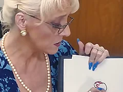 She cums ever in a row from such impassioned sex on the table in my office